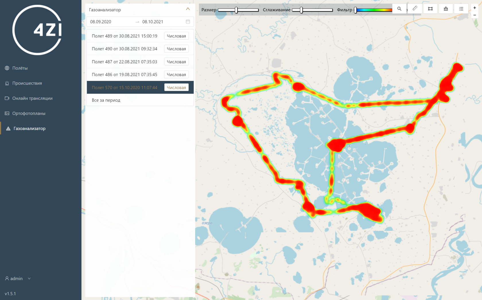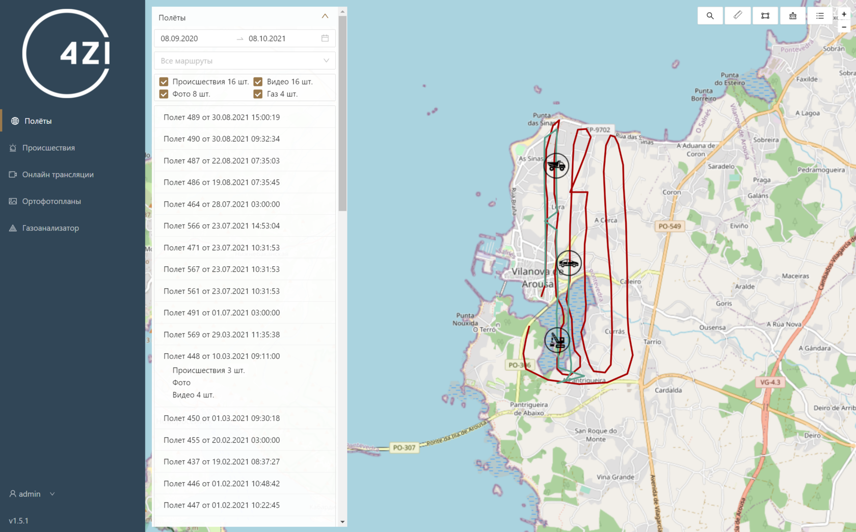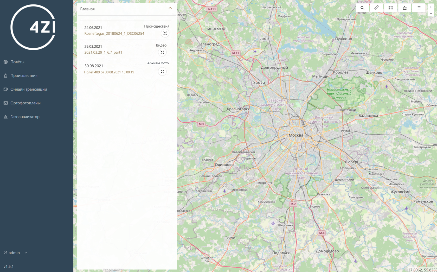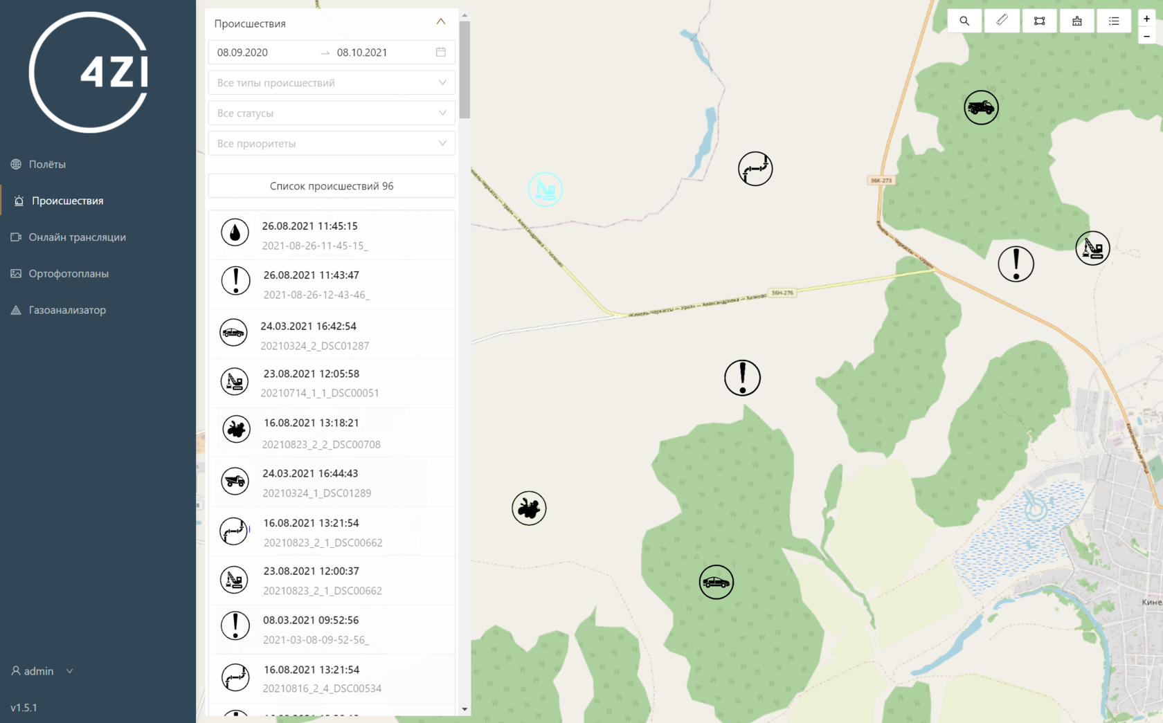 The module is designed for storing and analyzing data (photos, videos, incident cards, flight tracks, geodata) uploaded into the system, grouping it by flights, viewing media and metadata, exporting and filtering it, changing objects, etc.